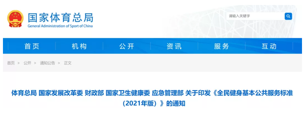 五部门联合发布《全民健身基本公共服务标准(2021年版)》