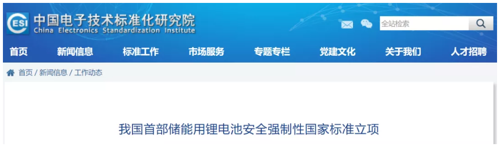 我国首部储能用锂电池安全强制性国家标准立项