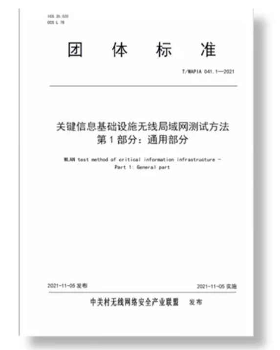 WAPI产业联盟发布关键信息基础设施无线局域网测试方法领域团体标准