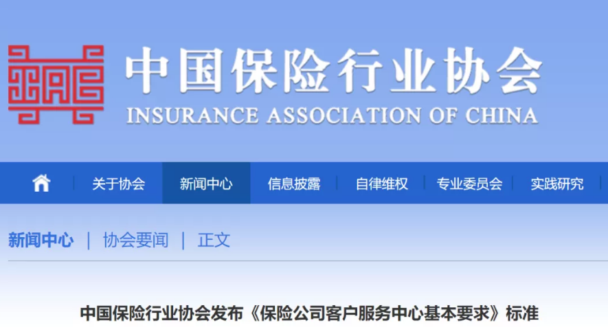 中国保险行业协会发布《保险公司客户服务中心基本要求》标准