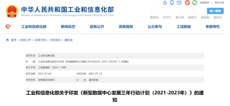 工信部印发《新型数据中心发展三年行动计划(2021-2023年)》:强化标准支撑引领,建立健全新型数