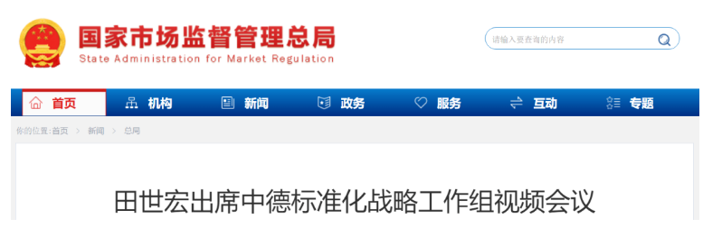 田世宏出席中德标准化战略工作组视频会议