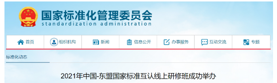 2021年中国-东盟国家标准互认线上研修班成功举办