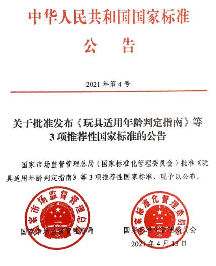 市场监管总局(国家标准委)批准发布《玩具适用年龄判定指南》等3项推荐性国家标准
