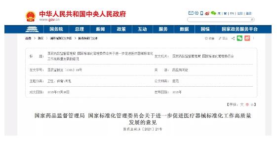 国家药品监督管理局 国家标准化管理委员会关于进一步促进医疗器械标准化工作高质量发展的意见
