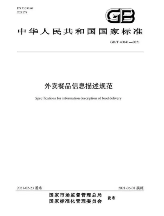 外卖行业首个国家标准来了,《外卖餐品信息描述规范》正式发布
