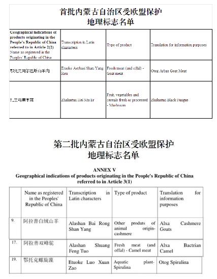 中欧地理标志协定今天正式生效 内蒙古5件地理标志将分两批获得欧盟保护