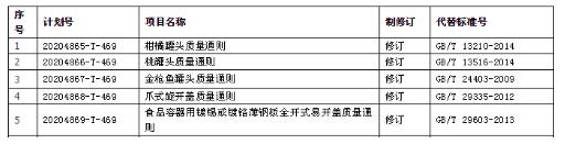 《柑橘罐头质量通则》、《桃罐头质量通则》等五项罐头行业国家标准启动修订