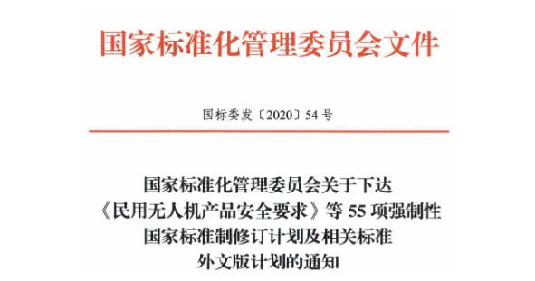 国家标准委下达《民用无人机产品安全要求》等55项强制性国家标准制修订计划及相关标准外文版计划