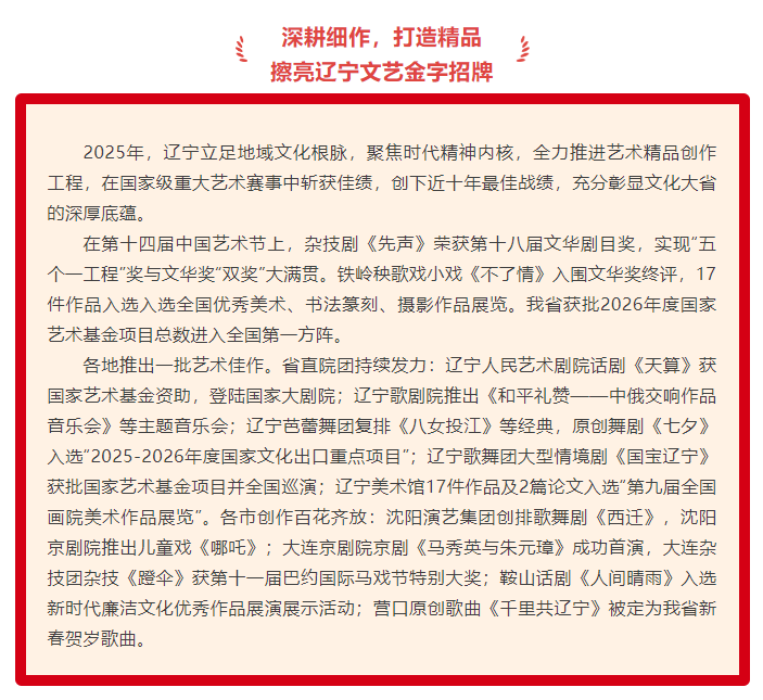 以艺术之名 赴时代之约 ——2025年辽宁专业艺术工作综述