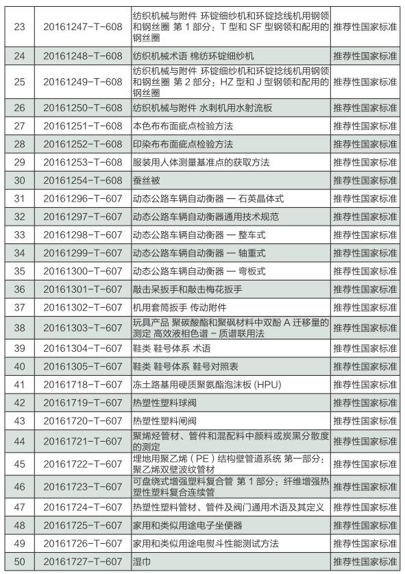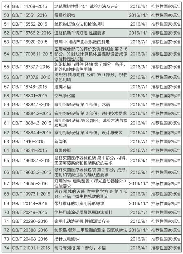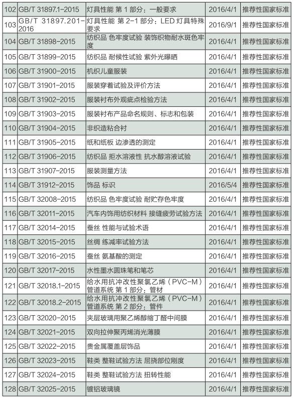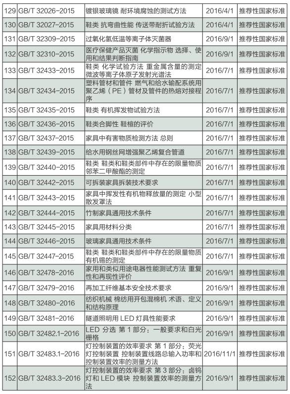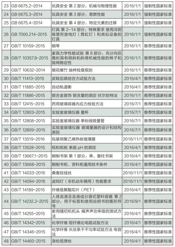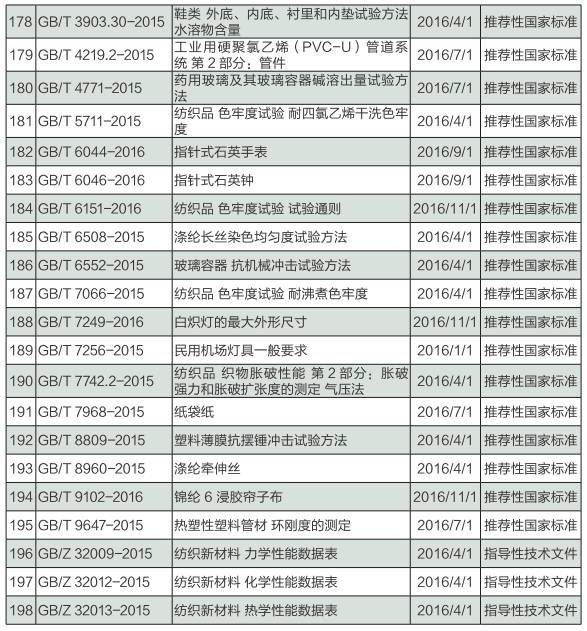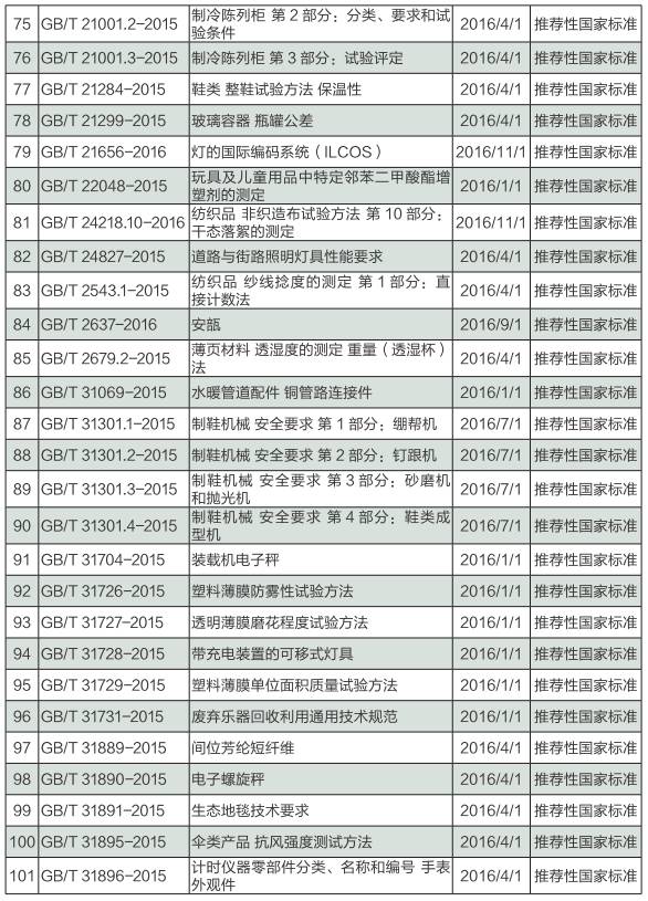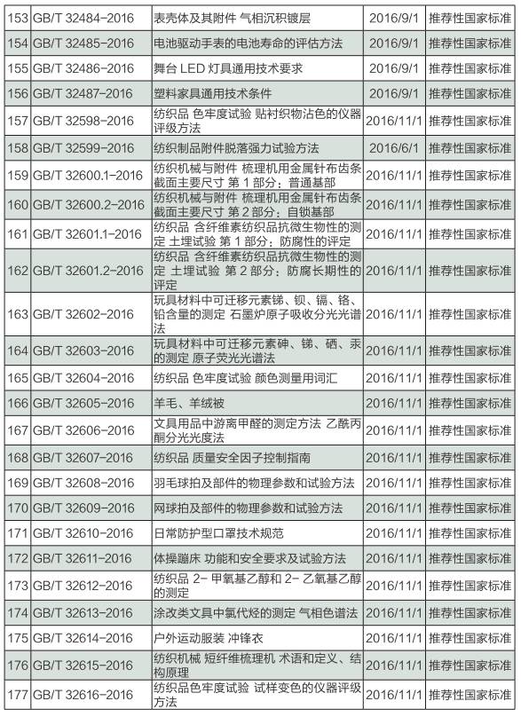 2016 年立项、批准、实施的消费品国家标准汇集(截至2016年11月1日)