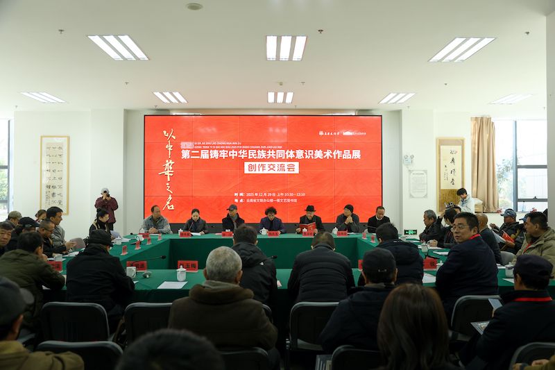 开幕式后,参会人员还参加了“铸牢中华民族共同体意识视域下新时代民族题材美术创作的实践与探索”创作交流会。主旨发言专家学者围绕如何在新的历史方位下讲好中华民族共同体故事、推动民族题材美术创作守正创新进行深入研讨,入展作者代表结合本次参展作品分享创作构思与实践体会,与会代表还就创作中遇到的困惑与专家现场交流,现场气氛热烈。