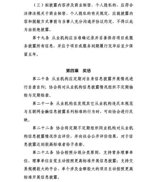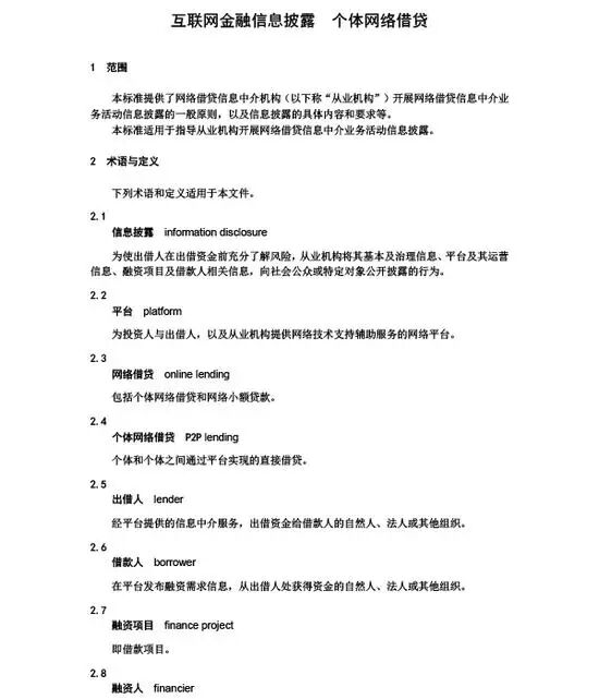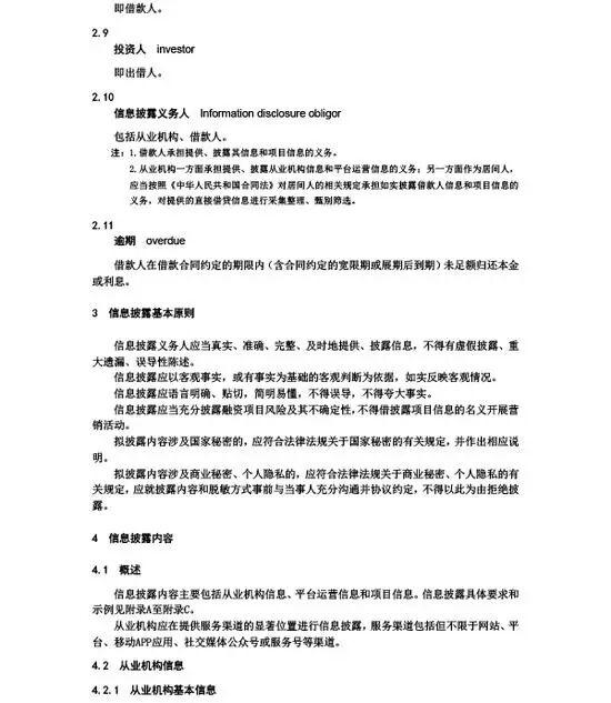 下附《互联网金融信息披露个体网络借贷》标准(T/NIFA 1—2016)和《中国互联网金融协会信息披露自律管理规范》原文: