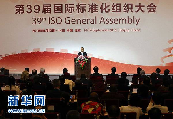 国务院总理李克强14日在北京出席第39届国际标准化组织大会并发表致辞。